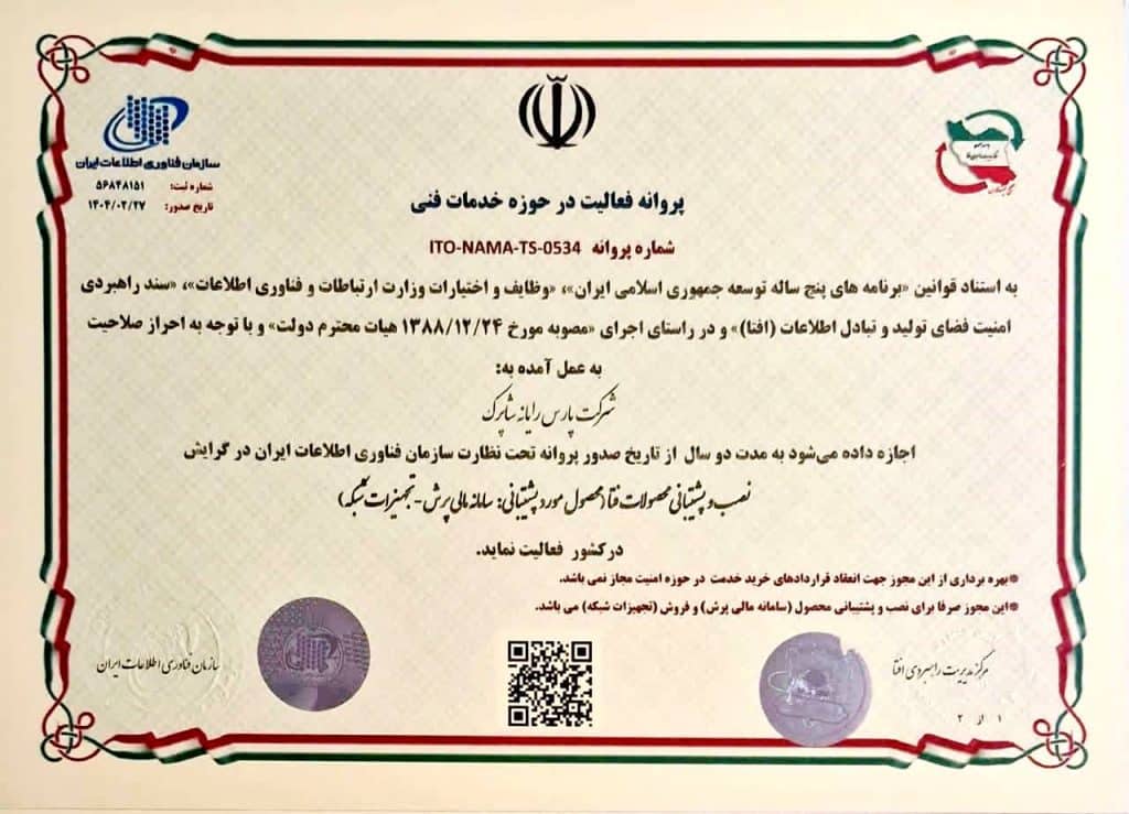 تاییدیه امنیت سامانه آنلاین فیش حقوقی پرش (افتا)